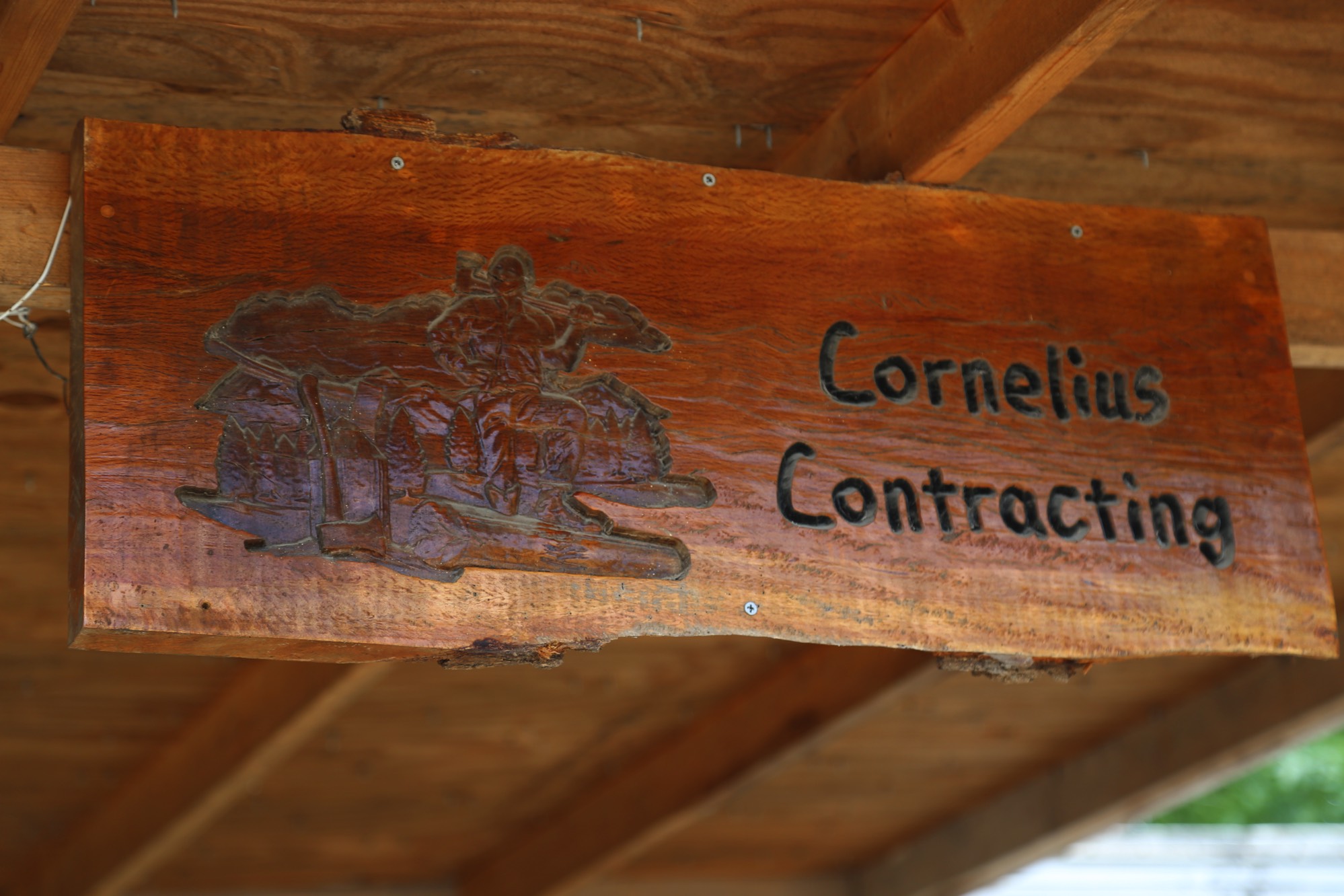 CUSTOM SIGNS Here at Cornelius Contracting, we offer hand-made and hand-routed signs that can be finished or unfinished for a true rustic look. We give FREE estimates.